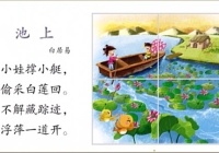 今天接蓬蓬放学,问今天在幼儿园学了什么。 他说学了首诗,说着就读了起来, 说来惭愧,我以前从没听过。 特记录在这里,勉励我们每天都要好好学习。 池上 白居易 小娃撑小艇,偷采白莲回。 不解藏踪迹,浮萍一道开。 赏析 池塘中一个个大莲蓬,新鲜清香,多么诱人啊! 一个小孩儿偷偷地撑着小船去摘了几个又赶紧划了回来。 他还不懂得隐藏自己偷摘莲蓬的踪迹,自以为谁都不知道; 可是小船驶过,水面原来平铺着的密密